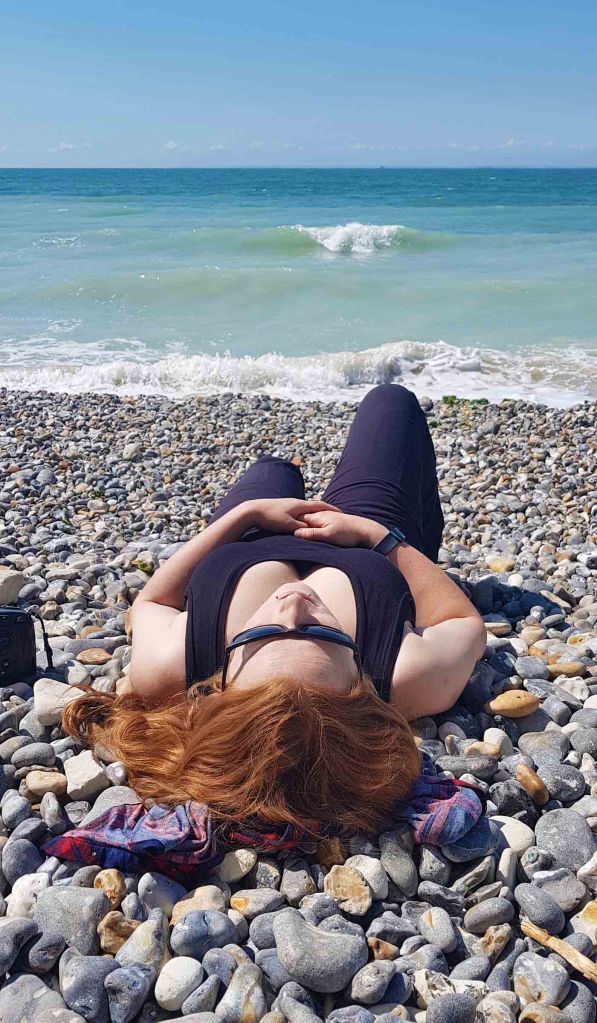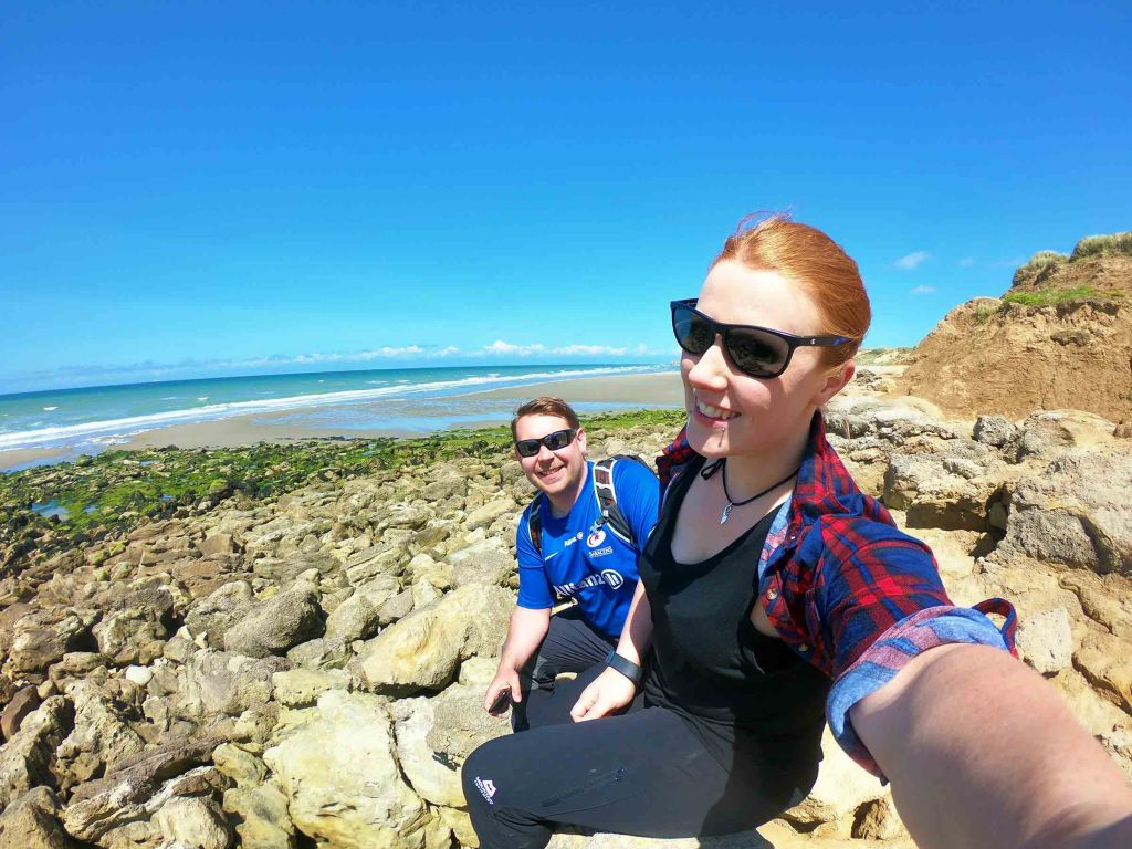 We left the van in a small car park in Cran d’Escalles, which lead straight out onto a long concrete slipway and down to a very thin stretch of beach. We walked until the casual flow of people stopped and made ourselves comfortable on the pebbles. High cliffs rose steeply behind us and the sea encroached from the front; we lay back listening to the waves rolling in and discussed the uncanny likeness of this stretch of beach to one we had visited near Møns Klint, Denmark, although this one was farmland on top instead of forests. The ‘going home’ feeling was creeping up on us but we enjoyed the sun and nothingness nonetheless.