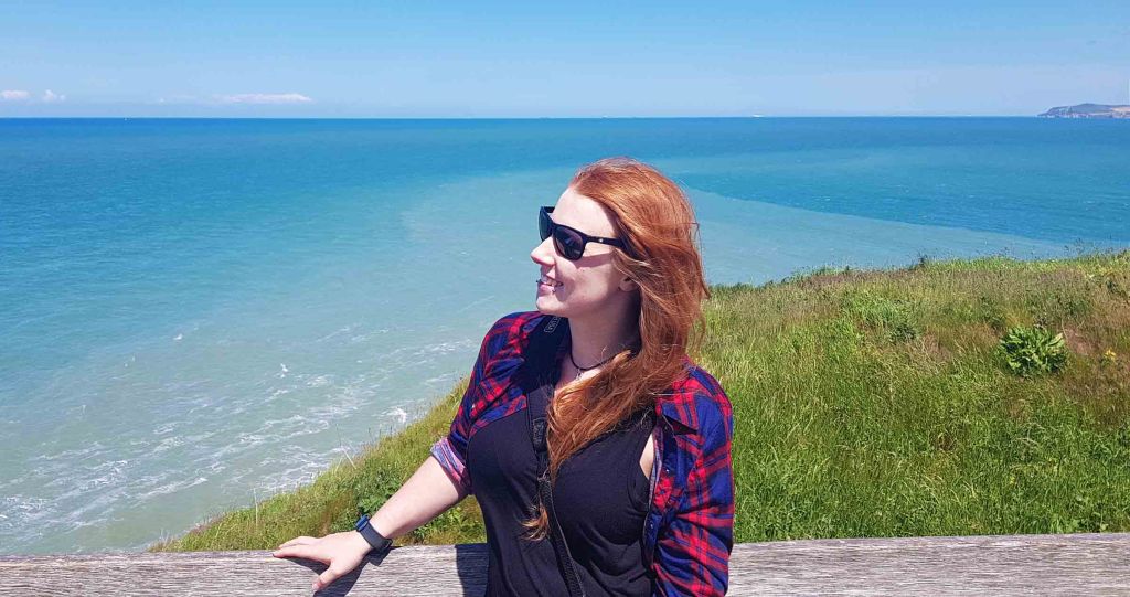 The fields had been left to grow, swathes of tall, meadow-style grasses were swaying in that same stiff breeze we enjoyed earlier in the day. The view point had information panels offering basic details of the area’s history, marine life of the Channel and shipping information. The view inland is dominated by the lighthouse, rather drab and grey; it was built in 1958 to replace its predecessor that was destroyed in 1944. This lighthouse and the accompanying radar station provide guidance to over 500 ships that pass the cape every day. More impressive were the views in the other direction Beautiful and far-reaching, a whole lot of sea topped off with a whole lot of sky… all in all, a whole lot of blue.